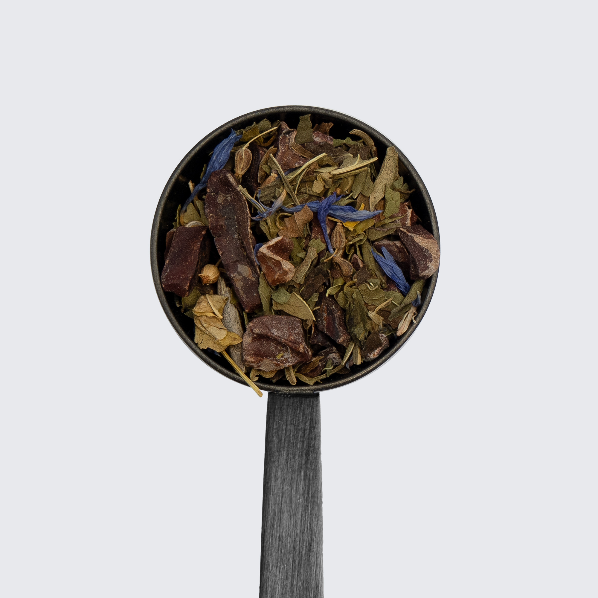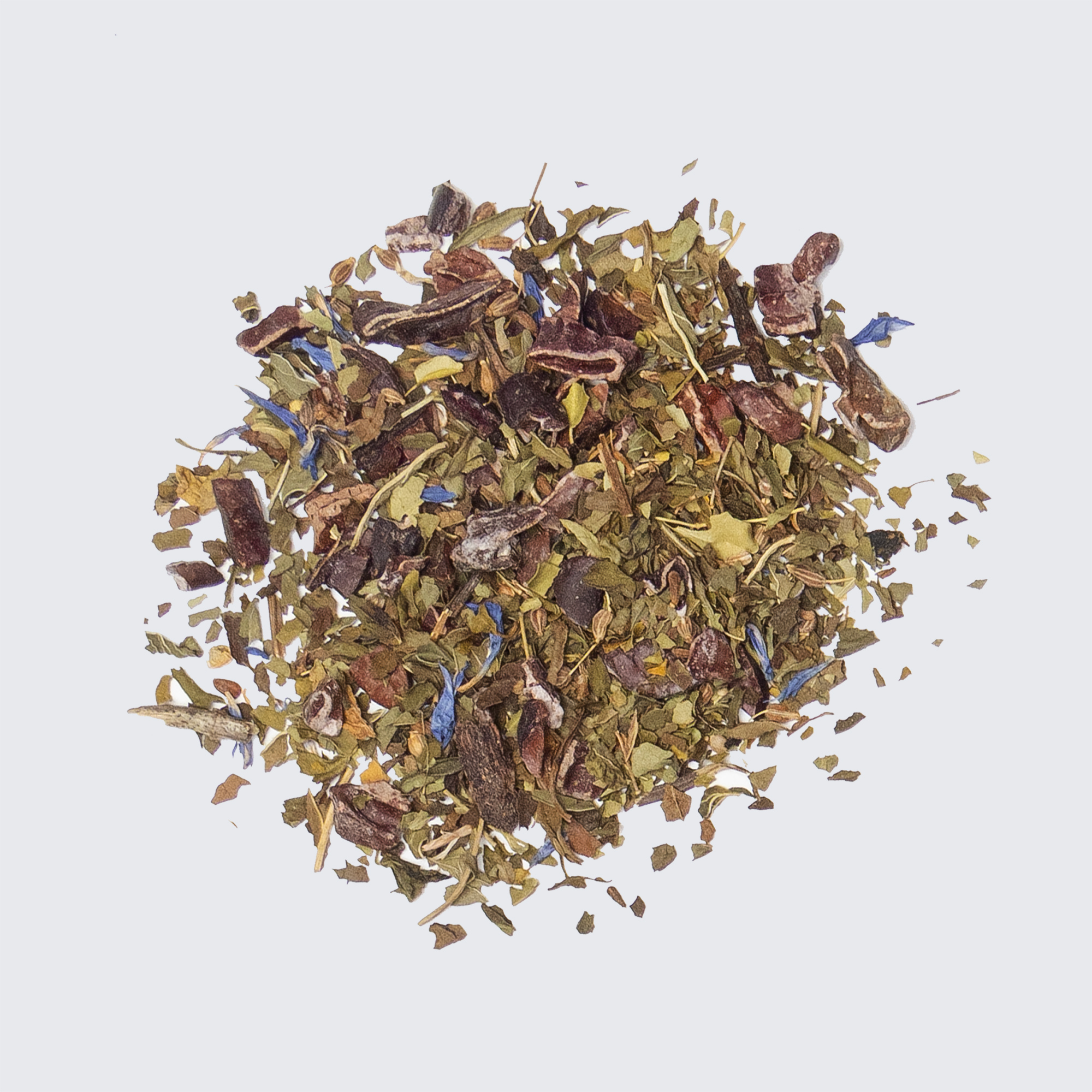 Peppermint, moringa, cocoa nibs, anise seeds, peppermint extract, cornflower.