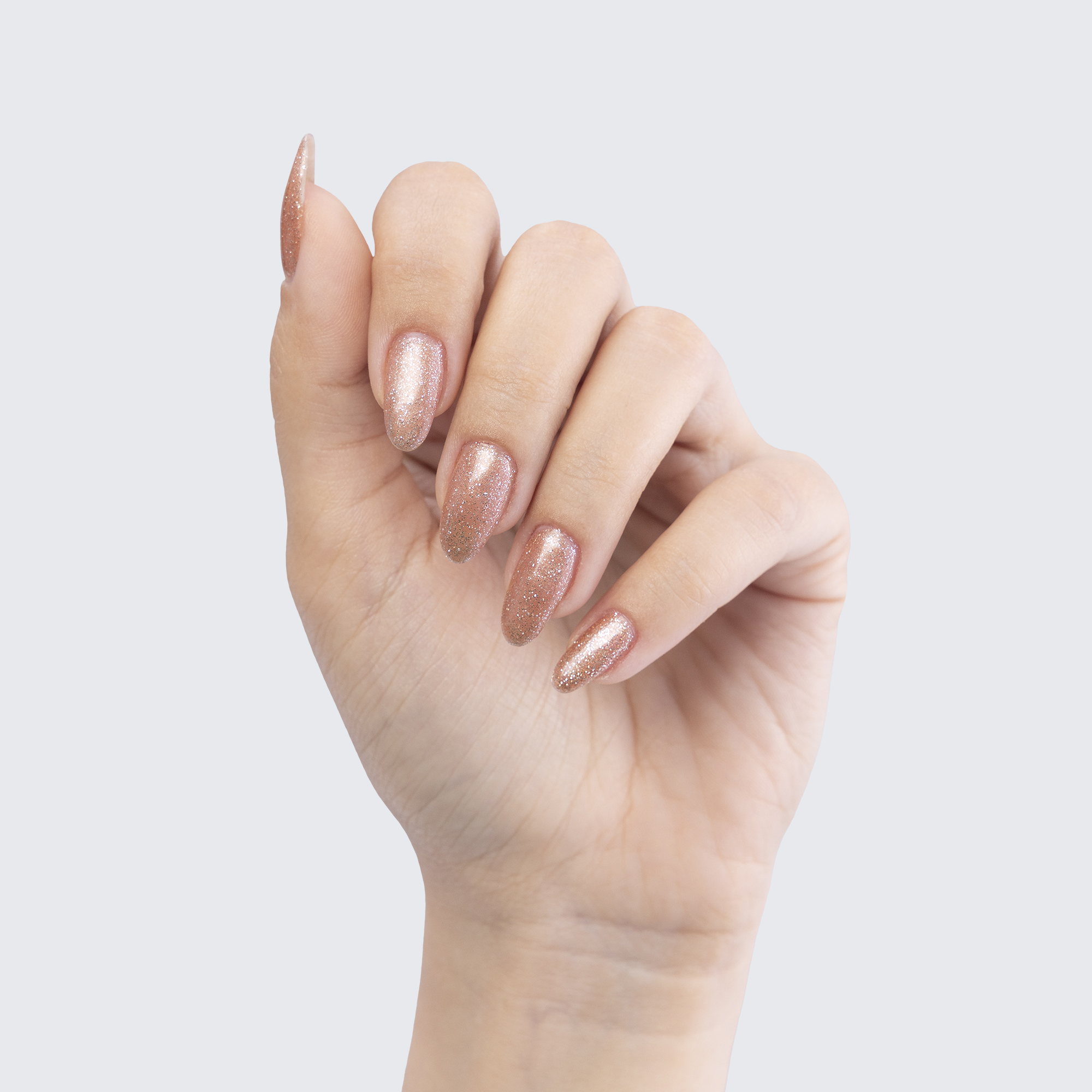 Rose gold. Light. Sparkles. Sheer. Warm undertone.